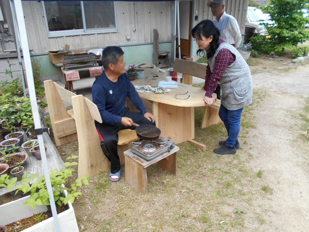 コーヒー屋 古川氏登場 早速焙煎自慢